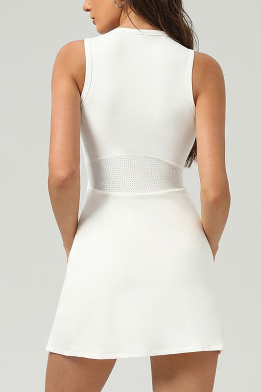 Crafted from premium moisture-wicking fabric with four-way stretch, this dress keeps you cool and comfortable. The thoughtfully designed built-in shorts provide coverage and freedom of movement, while strategic seaming creates a feminine shape that flatters every figure.